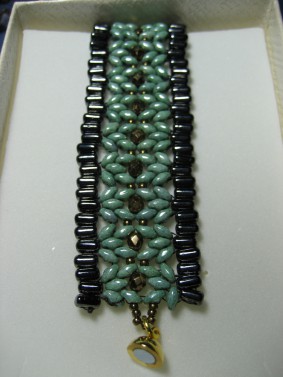 Brazalete tejido con piezas de cristal.Totalmente artesanal.