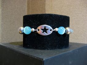Pulsera elástica con bolas de ojo de gato y pieza de metal estrella de zamac